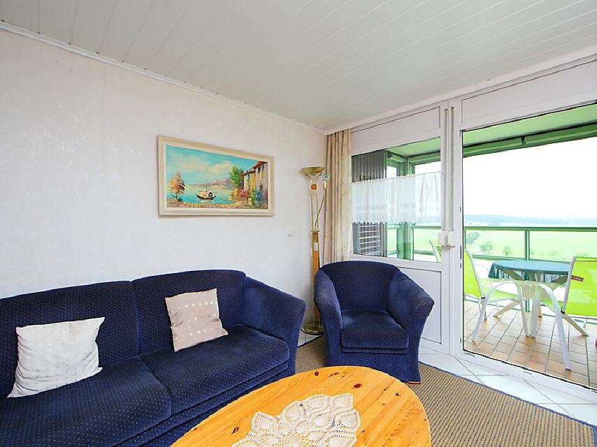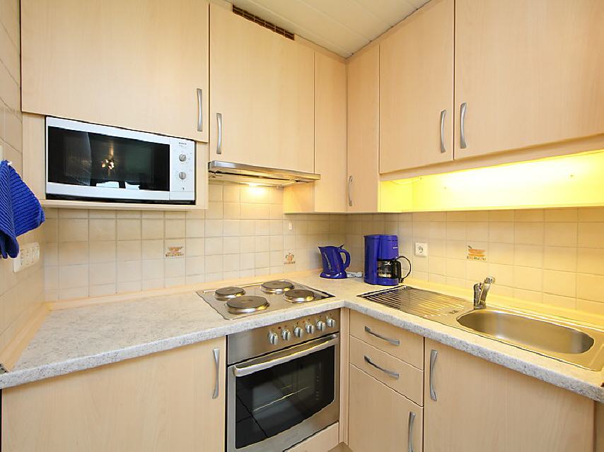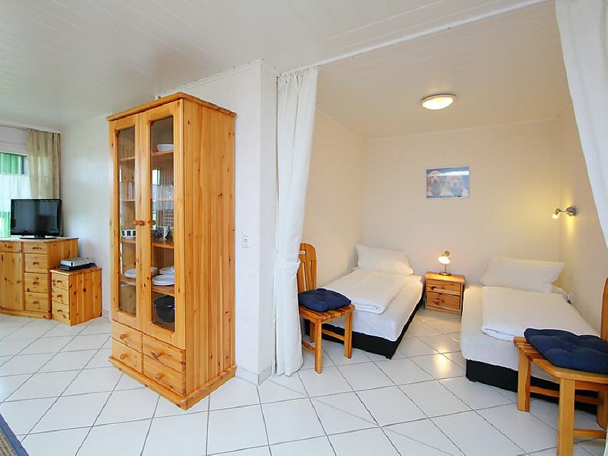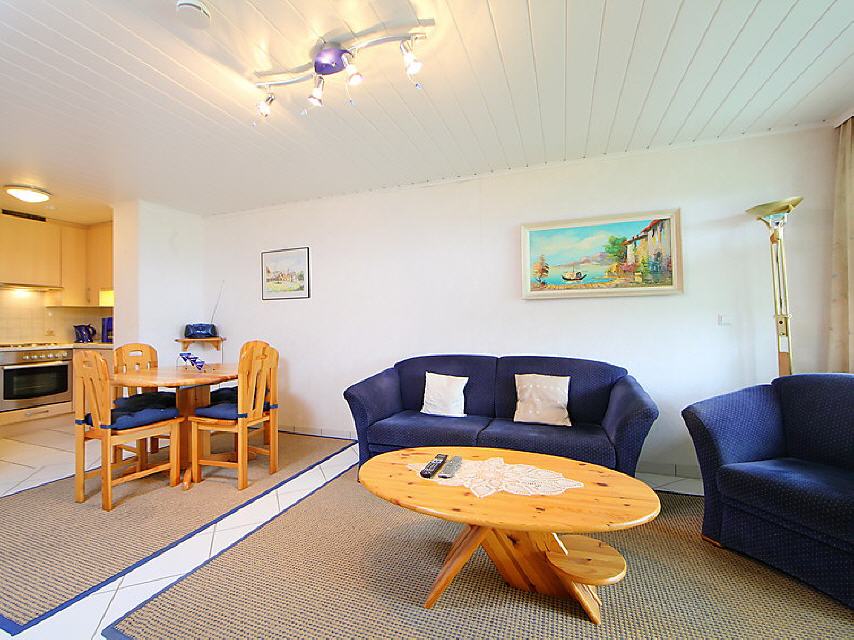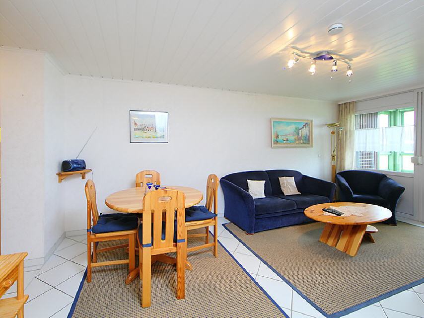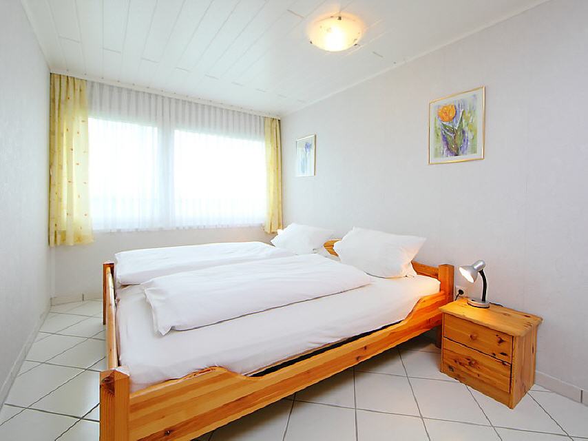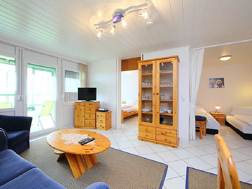 "F 56", 2-Zimmer-Wohnung 54 m2 im 4. Stock. Wohn-/Esszimmer mit Sat-TV (Flachbildschirm), Radio, CD und DVD. Schlafnische mit 2 Betten. 1 Doppelzimmer. Kochnische (4 Kochplatten, Backofen, Mikrowelle, elektrische Kaffeemaschine). Dusche/WC. Balkon. Balkonmöbel. Zur Verfügung: Telefon, Kinderhochstuhl (extra). Internet (Wireless LAN, gratis). Bitte beachten: Nichtraucher-Unterkunft. Der Balkon ist verglast.