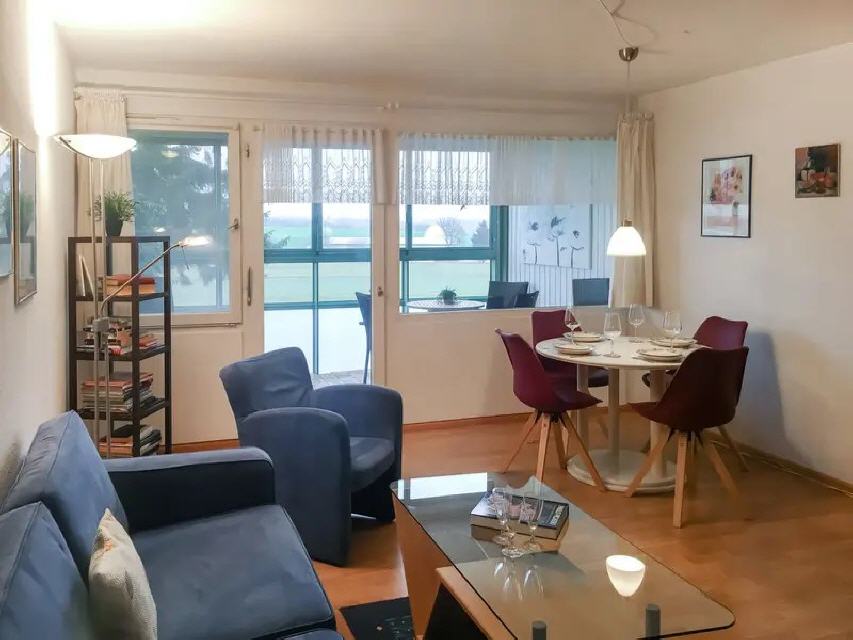 G 16", 2-Zimmer-Wohnung 52 m2, im erhöhten Erdgeschoss. Komfortabel und gemütlich eingerichtet: Wohn-/Esszimmer mit Sat-TV (Flachbildschirm), Radio. Schlafnische mit 1 franz. Bett (1 x 140 cm, Länge 200 cm). 1 Zimmer mit 1 Bett (90 cm, Länge 200 cm). Kochnische (2 Kochplatten, Toaster, Wasserkocher, Mikrowelle, elektrische Kaffeemaschine). Dusche/WC. Balkon. Balkonmöbel. Zur Verfügung: Kinderhochstuhl (extra). Bitte beachten: Nichtraucher-Unterkunft. Maximal 1 Haustier/Hund erlaubt. Der Balkon ist verglast.