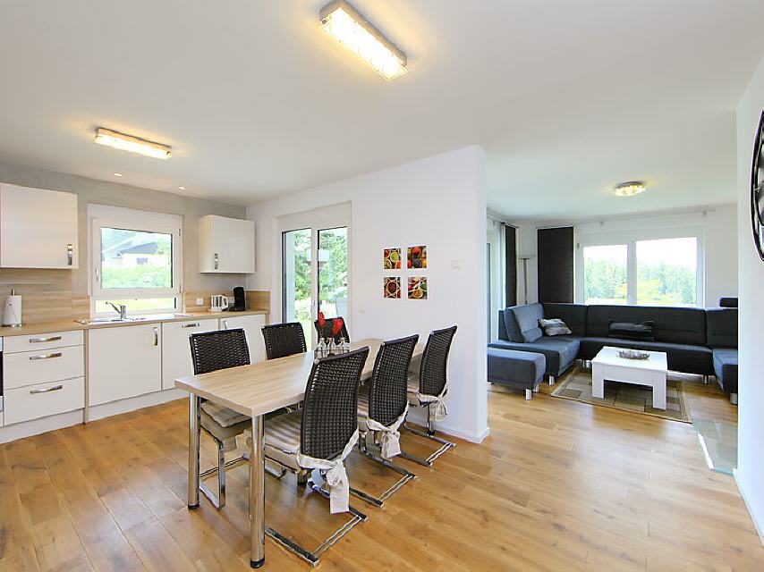 Sehr gemütliches, komfortables Einfamilienhaus "Ambiente". Am Ortsrand, 300 m vom Zentrum, ruhige, sonnige Lage, 100 m vom Waldrand. Zur Alleinbenutzung: Garten mit Liegewiese. Im Hause: Zentralheizung. Zur Verfügung: Schlitten (2). Treppenweg (25 Stufen) bis zum Haus. Parkplatz beim Haus. Supermarkt 3 km, Restaurant 500 m, Bäckerei 4 km, Bushaltestelle 400 m, Bahnstation "Löffingen" 5 km, Freibad 400 m, Hallenbad 500 m. Golfplatz (18 Loch) 20 km, Tennis 4 km, Skilift 500 m, Schlittelbahn 400 m, Langlaufloipe 500 m, Kinderspielplatz 200 m. Nahe gelegene Sehenswürdigkeiten: Freiburg 45 km. Bekannte Skigebiete sind gut erreichbar: Feldberg 35 km. Bekannte Seen in der Umgebung sind gut erreichbar: Titisee 23 km, Schluchsee 39 km. Das Ferienhaus ist mit einer umweltbewussten Erdwärmeheizung ausgestattet.