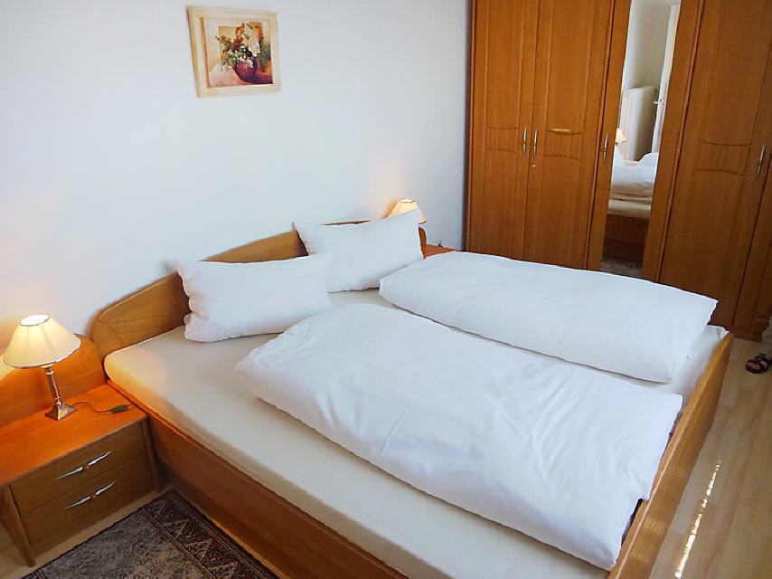 4-Zimmer-Haus 78 m2, im Erdgeschoss. Wohn-/Esszimmer mit Sat-TV (Flachbildschirm), Radio. Ausgang zur Terrasse. 1 Zimmer mit 2 Betten. 1 Doppelzimmer mit Waschbecken und Sat-TV (Flachbildschirm). 1 Doppelzimmer. Küche (Backofen, Geschirrspüler, 4 Glaskeramikherd Platten, Mikrowelle, elektrische Kaffeemaschine). Bad, sep. WC. Terrassenmöbel. Zur Verfügung: Telefon, Kinderhochstuhl (extra). Internet (DSL/LAN, gratis). Garage. Maximal 1 Haustier/Hund erlaubt. Rauchen erlaubt.