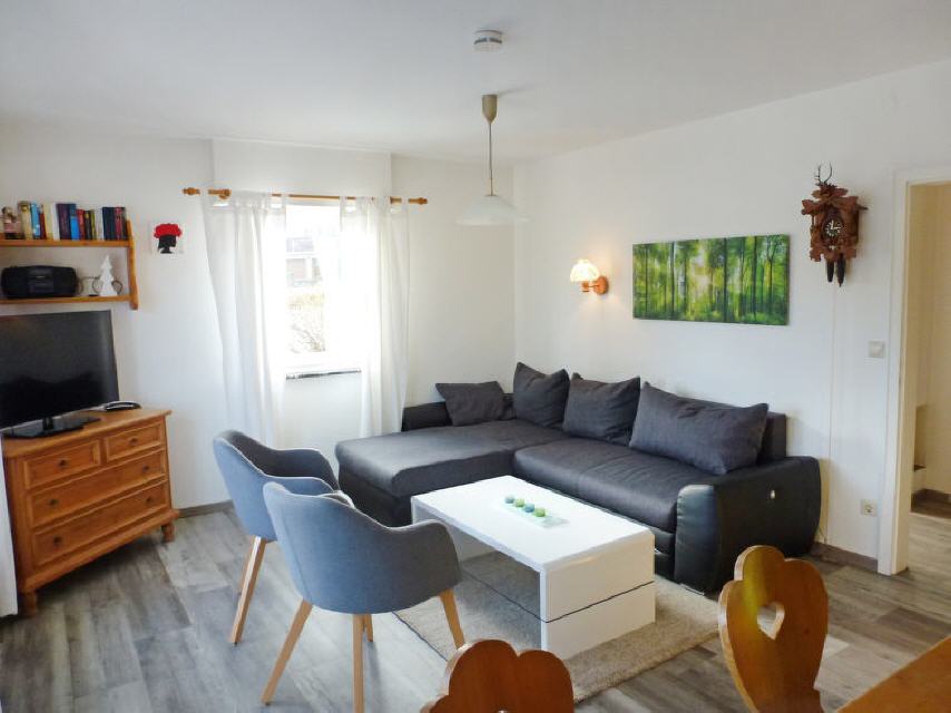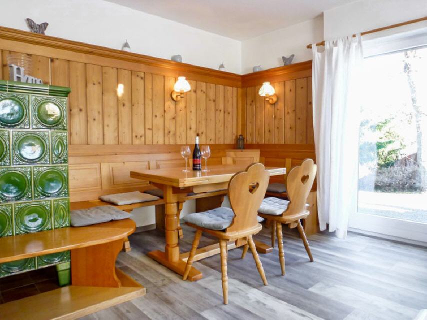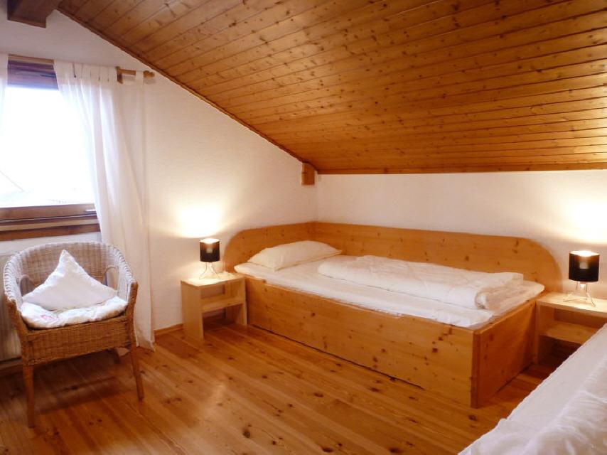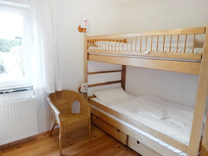 4-Zimmer-Haus 80 m2 auf 2 Stockwerken, im Erdgeschoss. Wohn-/Esszimmer mit Sat-TV (Flachbildschirm), Radio und Kachelofen. Ausgang zum Garten, zur Terrasse. 1 Zimmer mit 1 x 2 Etagenbetten. 1 Doppelzimmer. Küche (Backofen, Geschirrspüler, 4 Glaskeramikherd Platten, Mikrowelle, elektrische Kaffeemaschine). Dusche/WC. Obergeschoss: 1 abgeschrägtes Zimmer mit 2 Betten. Sep. WC. Terrassenmöbel, Abstellkammer. Zur Verfügung: Waschmaschine, Wäschetrockner, Telefon, Kinderhochstuhl (extra), Holz (extra). Internet (DSL/LAN, gratis). Garage. Bitte beachten: Nichtraucher-Haus. Maximal 1 Haustier/Hund erlaubt. Die Betten im Zweibettzimmer stehen hintereinander.