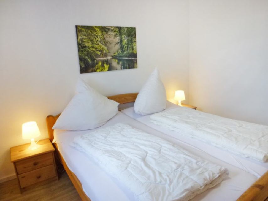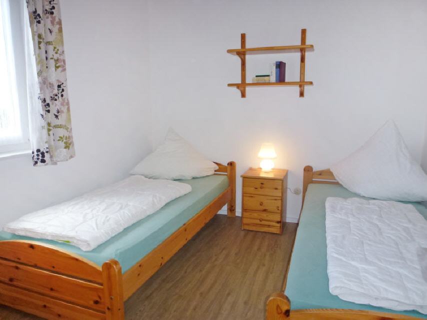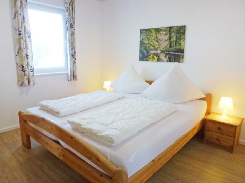 3-Zimmer-Haus 61 m2. Wohn-/Esszimmer mit Sat-TV (Flachbildschirm), Radio und CD. Ausgang zum Garten, zur Terrasse. 1 Zimmer mit 1 Doppelbett (2 x 90 cm, Länge 200 cm). 1 Zimmer mit 2 Betten (90 cm, Länge 200 cm). Offene Küche (Backofen, 4 Glaskeramikherd Platten, elektrische Kaffeemaschine). Dusche/WC. Terrassenmöbel. Zur Verfügung: Telefon, Kinderhochstuhl, Babybett (extra), Haartrockner. Internet (Wireless LAN, gratis). Parkplatz. Bitte beachten: Nichtraucher-Haus. Maximal 1 Haustier/Hund erlaubt.