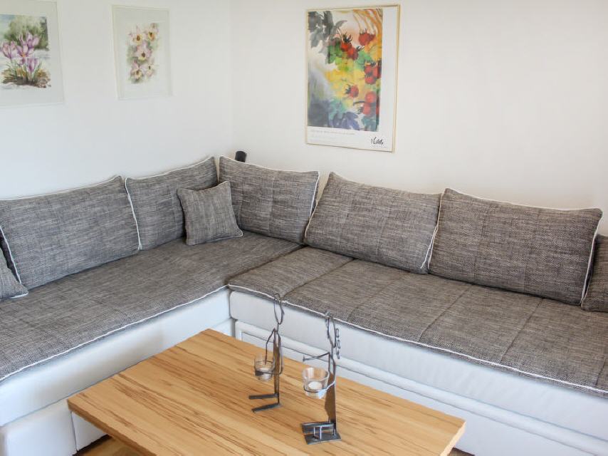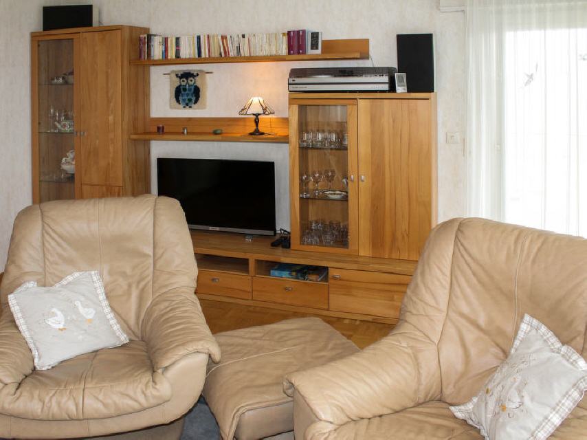 4-Zimmer-Haus 80 m2 auf 2 Stockwerken, im Erdgeschoss. Objekt geeignet für 4 Erwachsene + 2 Kinder. Wohn-/Esszimmer mit Sat-TV (Flachbildschirm), Radio. Ausgang zum Balkon. 1 Zimmer mit 1 x 2 Etagenbetten. 1 Doppelzimmer mit Waschbecken. Küche (Backofen, Geschirrspüler, Mikrowelle, elektrische Kaffeemaschine). Bad/WC. Unteres Geschoss: 1 Zimmer mit 1 Doppeldiwanbett und Waschbecken. Ausgang zum Garten. Terrassenmöbel. Zur Verfügung: Waschmaschine, Telefon, Kinderhochstuhl (extra). Internet (DSL/LAN, gratis). Parkplatz, Garage. Bitte beachten: Nichtraucher-Haus. Maximal 2 Haustiere/Hunde erlaubt.