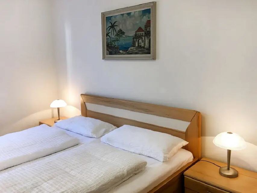 4-Zimmer-Haus 78 m2. Wohn-/Esszimmer mit Sat-TV (Flachbildschirm), Radio. Ausgang zur Terrasse. 1 Doppelzimmer mit Waschbecken. 1 Zimmer mit 2 Betten und Sat-TV. 1 Doppelzimmer. Küche (Backofen, Geschirrspüler, 4 Glaskeramikherd Platten, Mikrowelle, elektrische Kaffeemaschine). Dusche, sep. WC. Terrasse 8 m2. Zur Verfügung: Waschmaschine, Bügeleisen, Haartrockner. Internet (Wireless LAN). Parkplatz beim Haus. Bitte beachten: Nichtraucher-Haus.