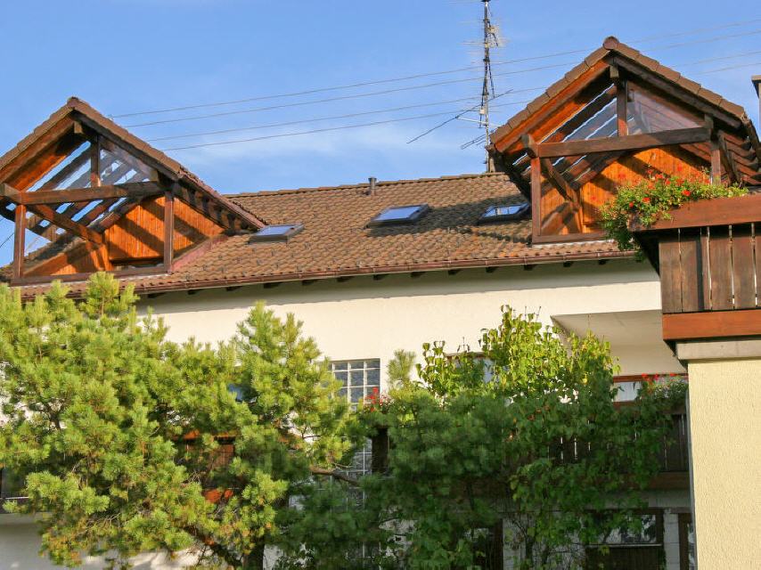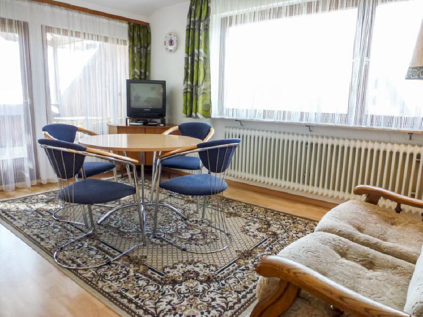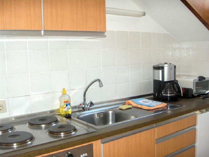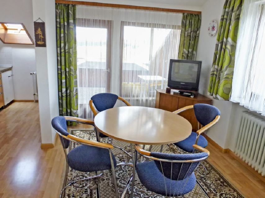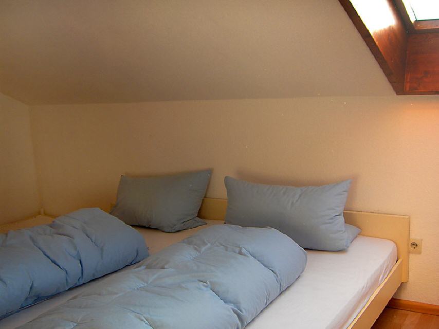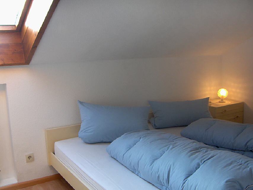 3-Zimmer-Wohnung 57 m2, im Dachgeschoss. Teilweise abgeschrägt: Wohn-/Esszimmer mit Sat-TV und Radio. Ausgang zum Balkon. 2 Doppelzimmer. Kochnische (Mini-Backofen, elektrische Kaffeemaschine). Bad/WC. Kleiner Balkon 6 m2. Balkonmöbel. Bitte beachten: Nichtraucher-Unterkunft.