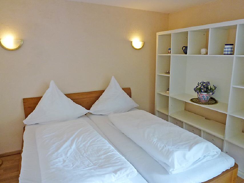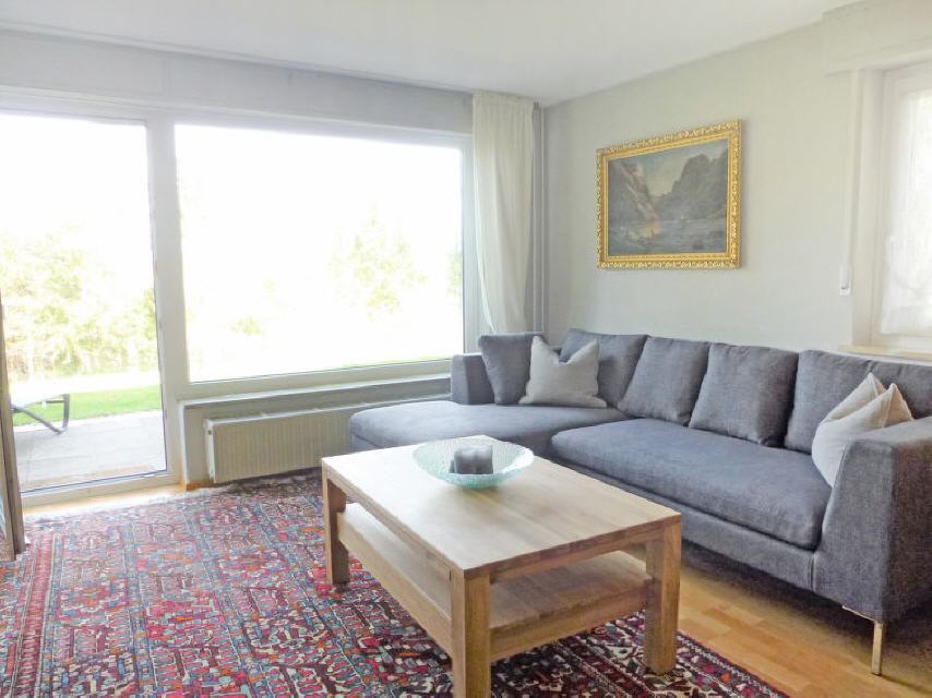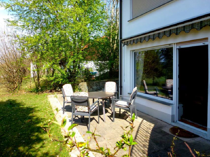 2-Zimmer-Wohnung 54 m2, im ebenerdigen Untergeschoss. Schön und gemütlich eingerichtet: Wohn-/Esszimmer mit 1 Doppelbett, Sat-TV und Internationale TV-Sender (Flachbildschirm), Radio und CD. Ausgang zur Terrasse. 1 Doppelzimmer. Küche (4 Kochplatten, Backofen, Geschirrspüler, Mikrowelle, elektrische Kaffeemaschine). Bad/WC. Grosse Terrasse. Terrassenmöbel. Schöne Sicht auf die Landschaft. Zur Verfügung: Waschmaschine, Kinderhochstuhl, Babybett (extra). Internet (Wireless LAN, gratis). Bitte beachten: Nichtraucher-Unterkunft. Maximal 1 Haustier/Hund erlaubt. Das Doppelzimmer verfügt nur über ein Kellerfenster (bedingt durch die Hanglage des Ferienhauses).